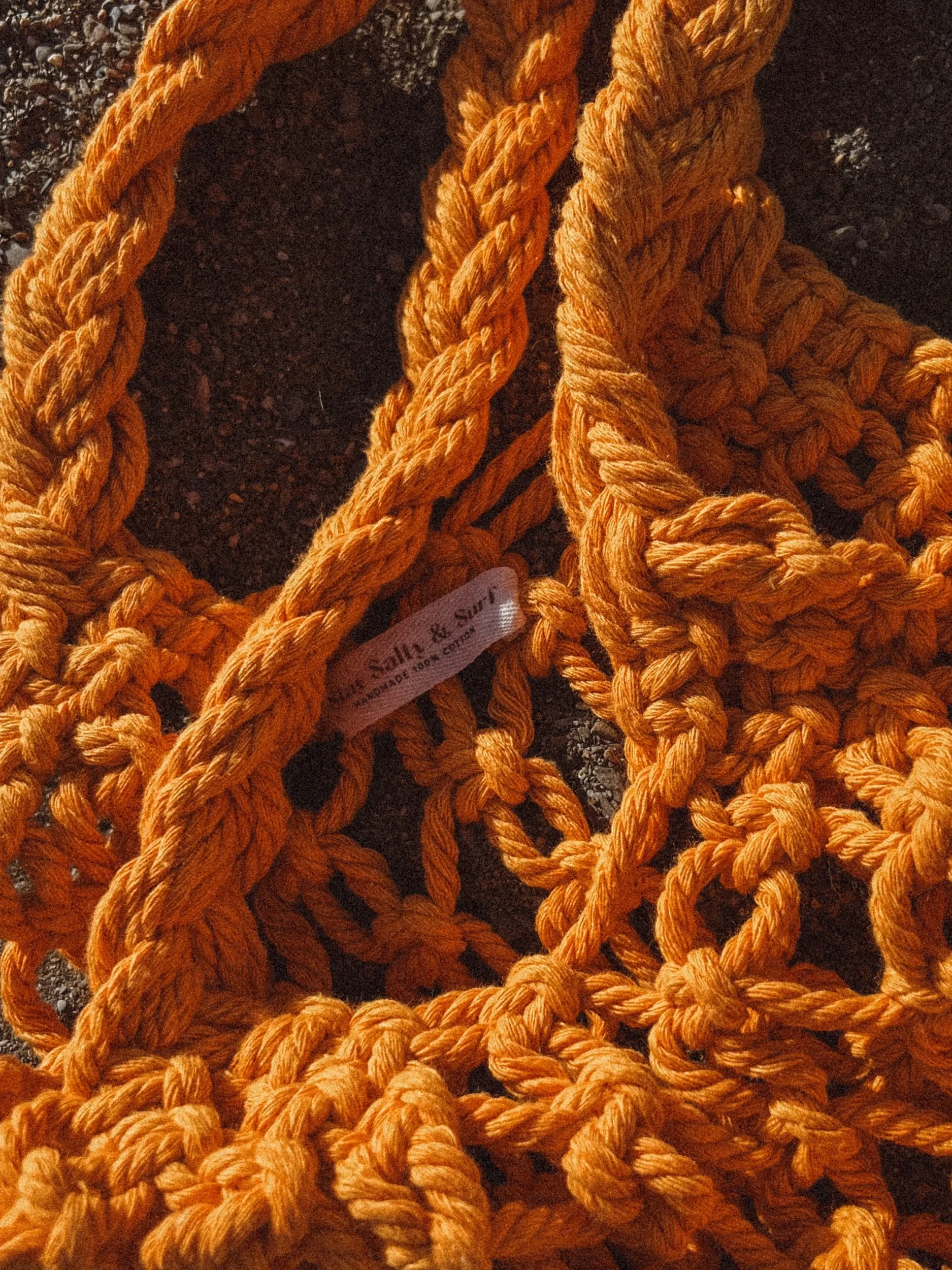 Step into golden hour with the Mango Daze Macramé Tote Bag – your new go-to for effortless summer style. Woven by hand with love and care, this tote glows in a rich mango hue that radiates warmth, joy, and sunny-day dreams.
